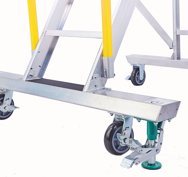 主體一鍵收疊延展無需組裝,便攜移動(dòng)式登高作業(yè)臺(tái),四腳附萬向腳輪方便移動(dòng),前腳增加腳杯穩(wěn)固性u(píng)p。