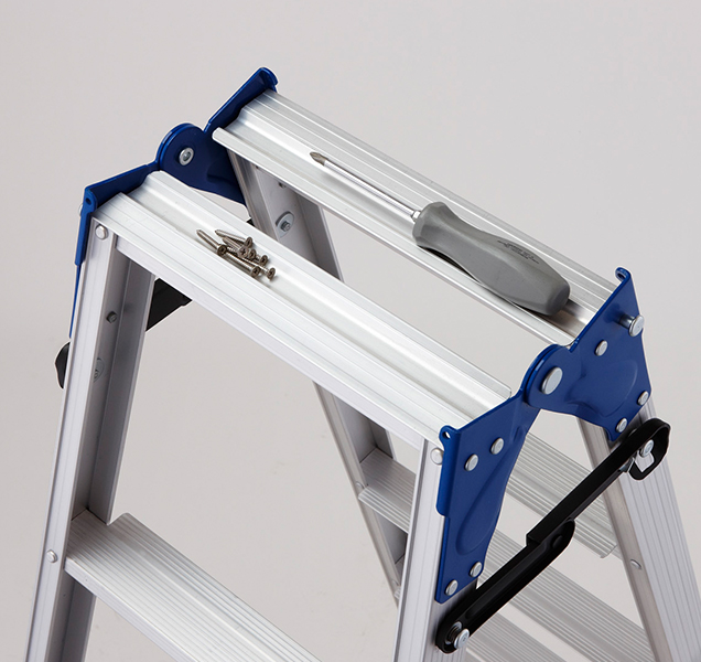 使用人字梯作業(yè)時(shí),應(yīng)站在包含天板從上往下第三層(210cm)踏板以下,身體應(yīng)靠著天板或踏板,在安全狀態(tài)下工作