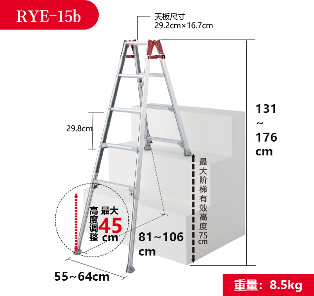 RYE-b 新版<臺階用>伸縮人字梯兼直梯
