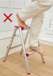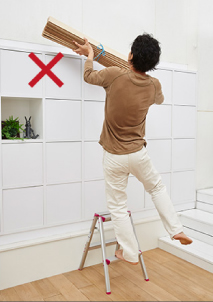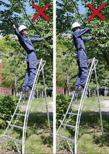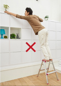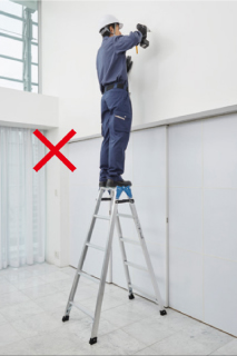 - 在三腳梯上進(jìn)行作業(yè)時(shí),請(qǐng)站在從天板開始數(shù)第四節(jié)(180cm以下的型號(hào)則為第三節(jié))以下的踏板上,身體輕靠天板和上層踏板,在平穩(wěn)的狀態(tài)下操作。