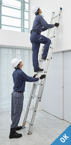 人字梯兼直梯的產(chǎn)品,在作為直梯使用時(shí)的倚靠角度為75度,請(qǐng)務(wù)必在有人輔助扶穩(wěn)梯子的情況下作業(yè)。