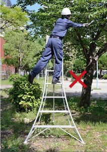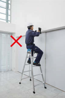 - 在三腳梯上進(jìn)行作業(yè)時(shí),請(qǐng)站在從天板開始數(shù)第四節(jié)(180cm以下的型號(hào)則為第三節(jié))以下的踏板上,身體輕靠天板和上層踏板,在平穩(wěn)的狀態(tài)下操作。